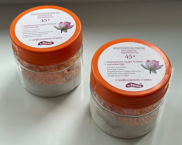 Інгредієнти: диатомическая земля, альгинат, розовая глина, аюрведическая пудра Лотоса, гранулы коэнзима Q10, лиофилизат экстракта Пиявки